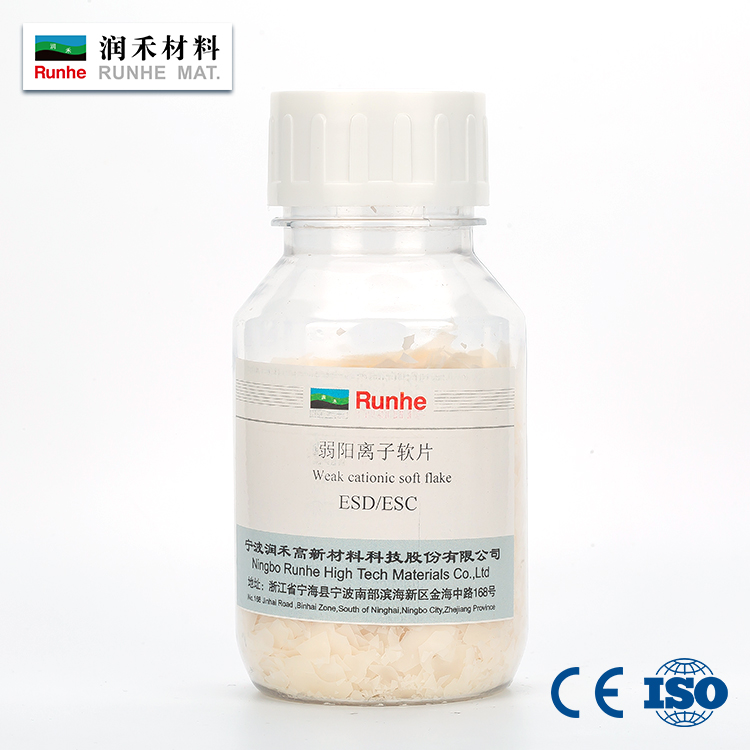 Weak cationic soft flake ESC is a weak cationic anti-wrinkle flake, applied in soft finishing of cotton, hemp and its blending fabric. It can acquire excellent soft hand feeling.